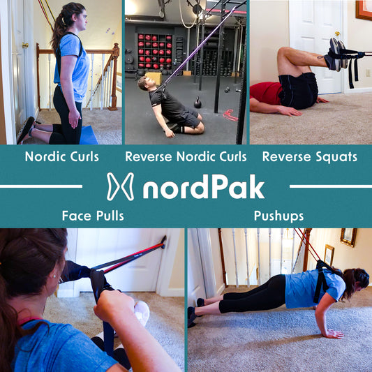 The nordPak is also great for reverse Nordics, face pulls, reverse squats, and pushups.